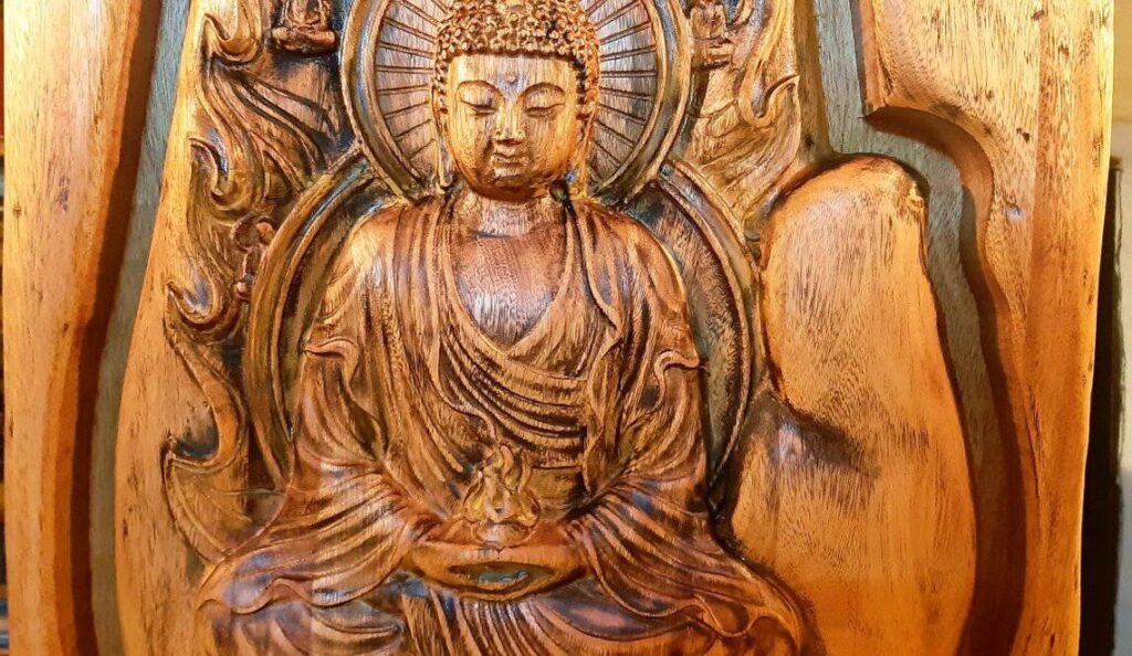Peças em madeira esculpidas com detalhe e arte
