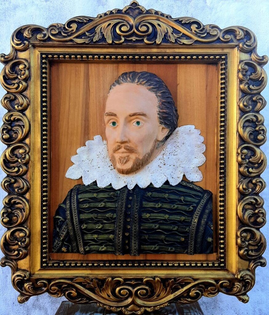 Escultura em Madeira Estilo William Shakespeare – Arte Clássica Entalhada